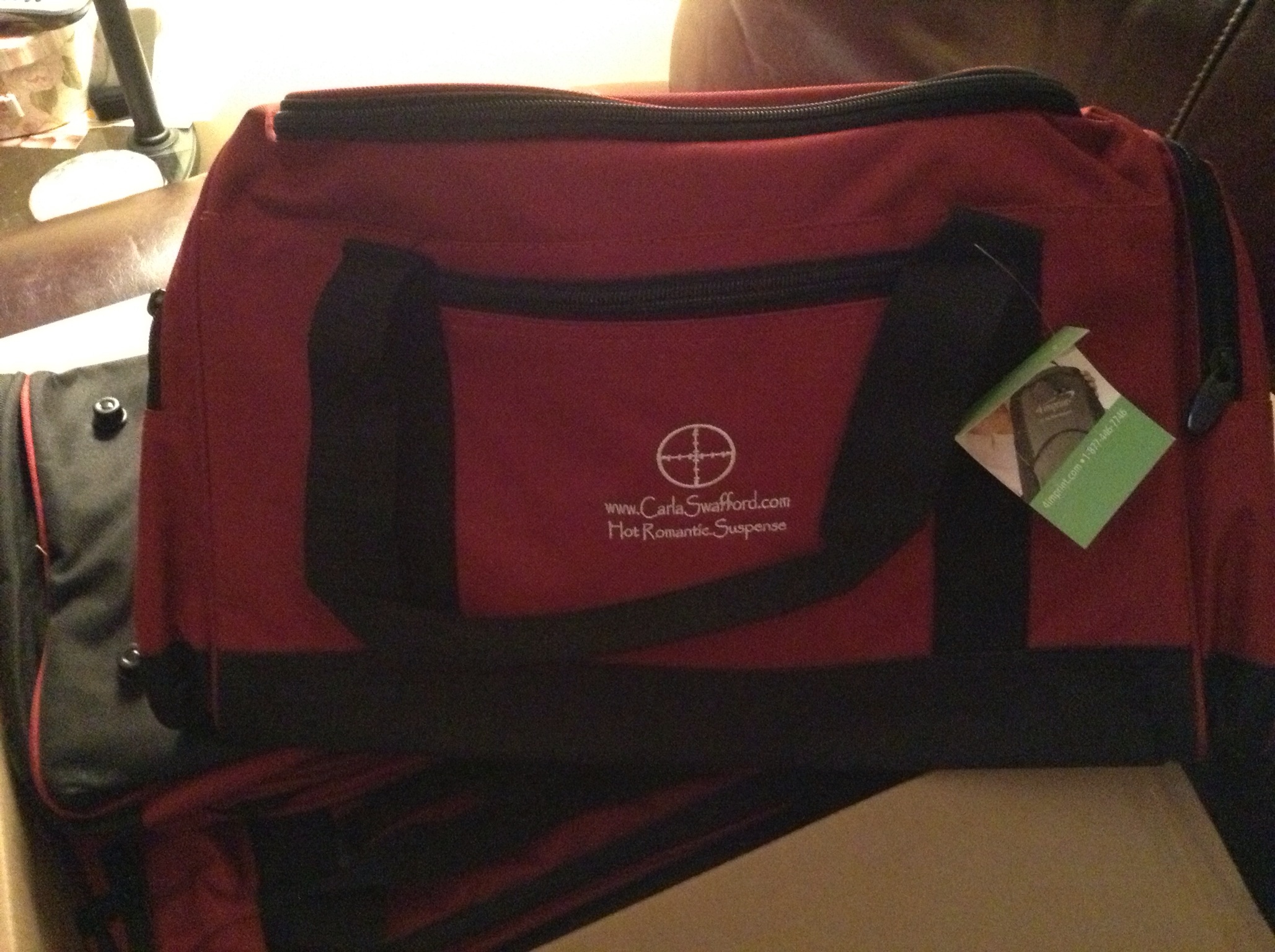 Are you interested in winning one? My logo and such are embroidered on the front of the sports bag. Cool, heh. I have three to giveaway Be sure to sign up for my newsletter. I will be pulling a winner from there on September 30.