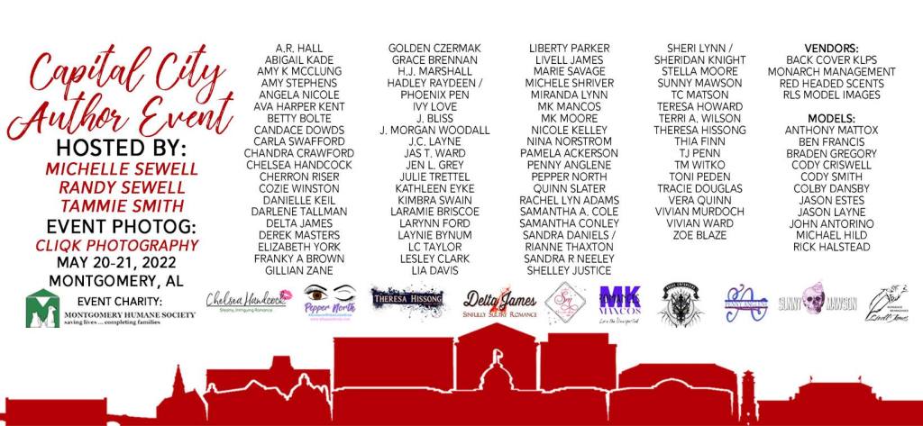 This last weekend, I had the pleasure of attending the Capital City Author Event in Montgomery. So well organized. I met so many nice people. When I returned home, I had to take a nap.